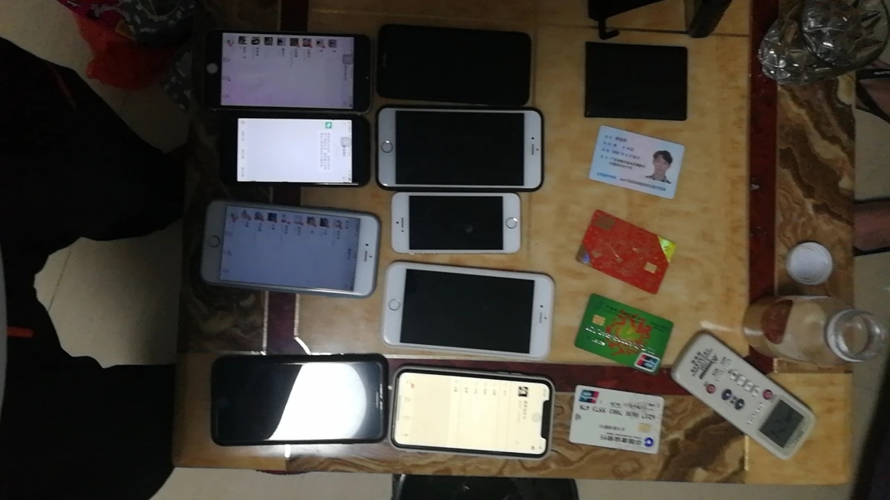 4月26日,抓捕組民警前往廣東省河源市,在當地公安機關的協助下,將犯罪嫌疑人湯某、黃某抓獲。經訊問,犯罪嫌疑人湯某、黃某供述了另外兩名團伙成員的信息。專案組民警根據線索連夜趕往廣州惠州市,通過蹲點守候,將正在實施網絡詐騙的楊某、胡某抓獲,現場扣押涉案手機9部、銀行卡若干張。