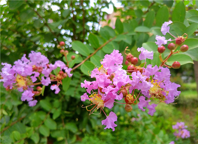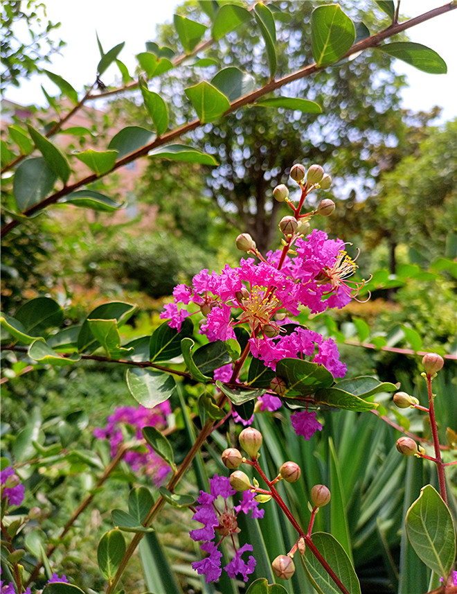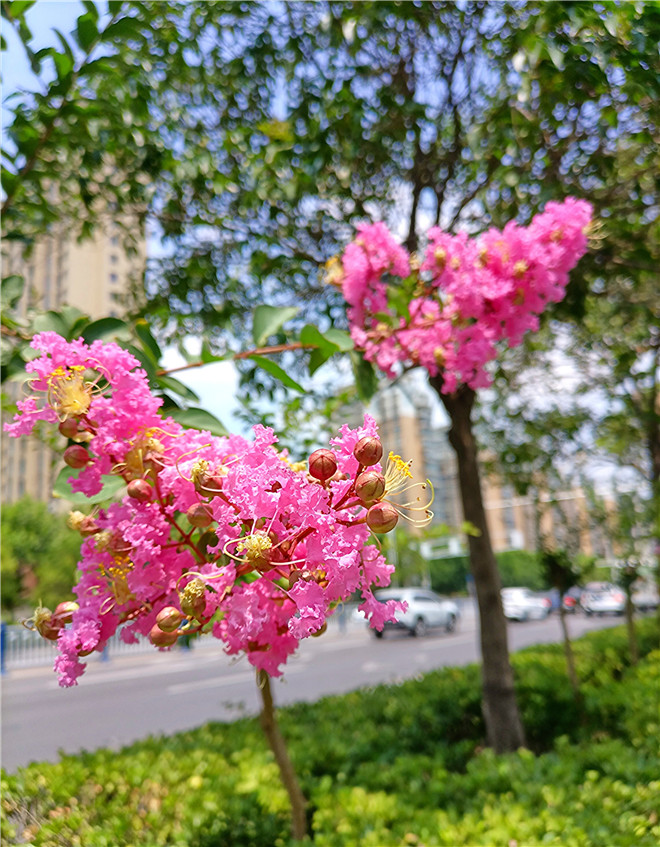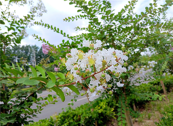 近日,中心城區(qū)的紫薇花悄無聲息地進(jìn)入盛放期。玫紅色、粉白色、淺紫色、純白色……五顏六色的紫薇花盡情地吐露著芬芳。它們像蝴蝶一樣在夏日的微風(fēng)中翩翩起舞,給我們的城市增添了靈動(dòng)的色彩。②8