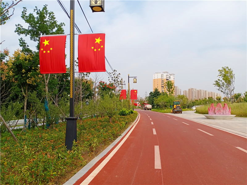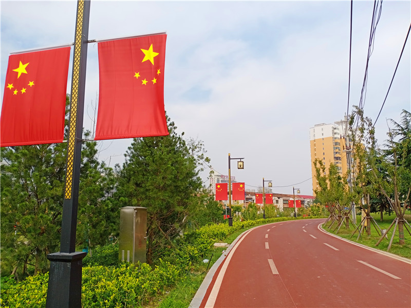 10月3日,國慶假期的第三天,記者在周口市中心城區(qū)中州大道橋與周口大道橋之間的沙潁河北岸的河堤(潁河路)上看到,街道邊懸掛著鮮艷的五星紅旗,給節(jié)日里的周口增添一抹喜慶色彩,讓市民在游玩欣賞沙潁河迷人風景的同時,感受濃厚的節(jié)日氣氛。③6