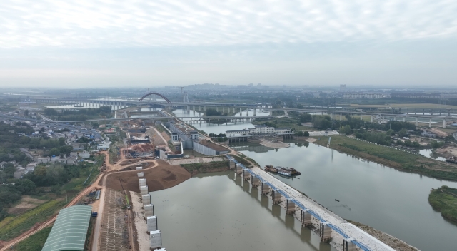 9月24日,豫貨出海、“周”向世界——周口航運出海大型異地采訪活動采訪組B組沿江淮運河南下,一路上攬渡槽、臨派河、經巢湖閘,再沿裕溪河左岸大堤下行,經過一道河灣后,一座高大的建筑如臥龍一般橫跨裕溪河上。