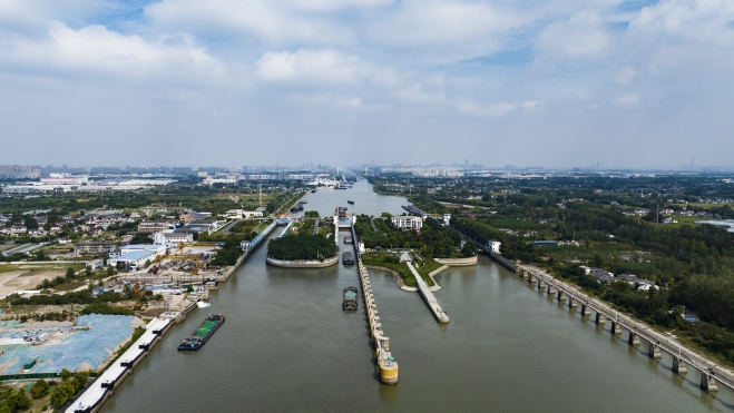 9月27日上午,“豫貨出海、周向世界”采訪組B組來到位于揚州市長江北岸的施橋船閘。古鎮施橋,長江與大運河在這里交匯,施橋船閘就位于這個交匯點上。
