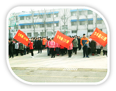 學校教學樓一角1、分部管理、分級段協調。 分部管理、分級段協調是我校改革創新的最大舉措。學校分為四個教學管理部,每個教學管理部管理七、八、九各兩個班級,部與部是競爭加合作的關系。這樣既實現了精細化管理又極大地調動了教師的積極性,解決了中小學教師普遍存在的"職業倦怠現象"。