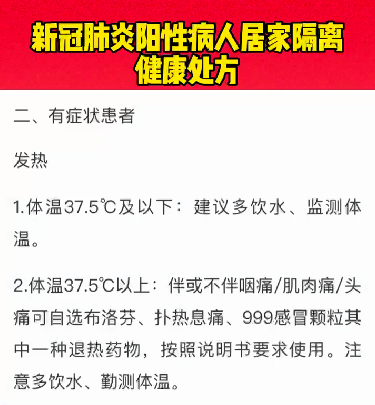 新冠肺炎陽性病人居家隔離健康處方